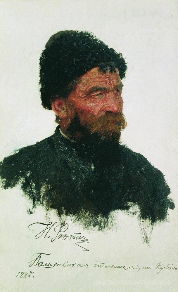 Nous vous proposons une reproduction artisanale sur toile du célèbre tableau 'La tête du cosaque' de Ilya Repin, provenant du Musée de la Reproduction.
