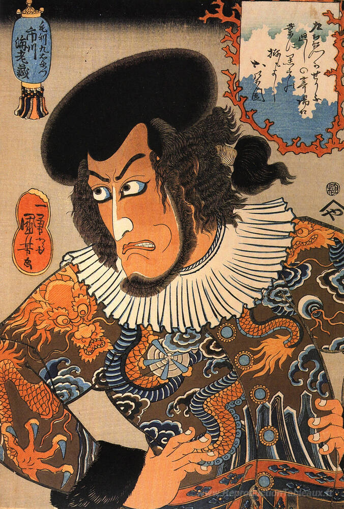 Nous vous proposons une reproduction artisanale sur toile du célèbre tableau 'L'acteur' de Utagawa Kuniyoshi, provenant du Musée de la Reproduction.