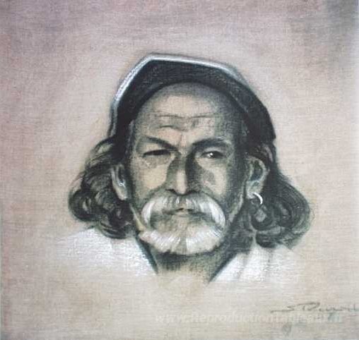 Nous vous proposons une reproduction artisanale sur toile du célèbre tableau 'Lahor (forgeron) de Kulu' de Nicholas Roerich, provenant du Musée de la Reproduction.