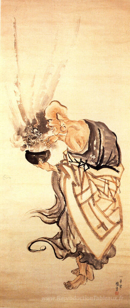Nous vous proposons une reproduction artisanale sur toile du célèbre tableau 'L'Arhat Handaka' de Utagawa Kuniyoshi, provenant du Musée de la Reproduction.