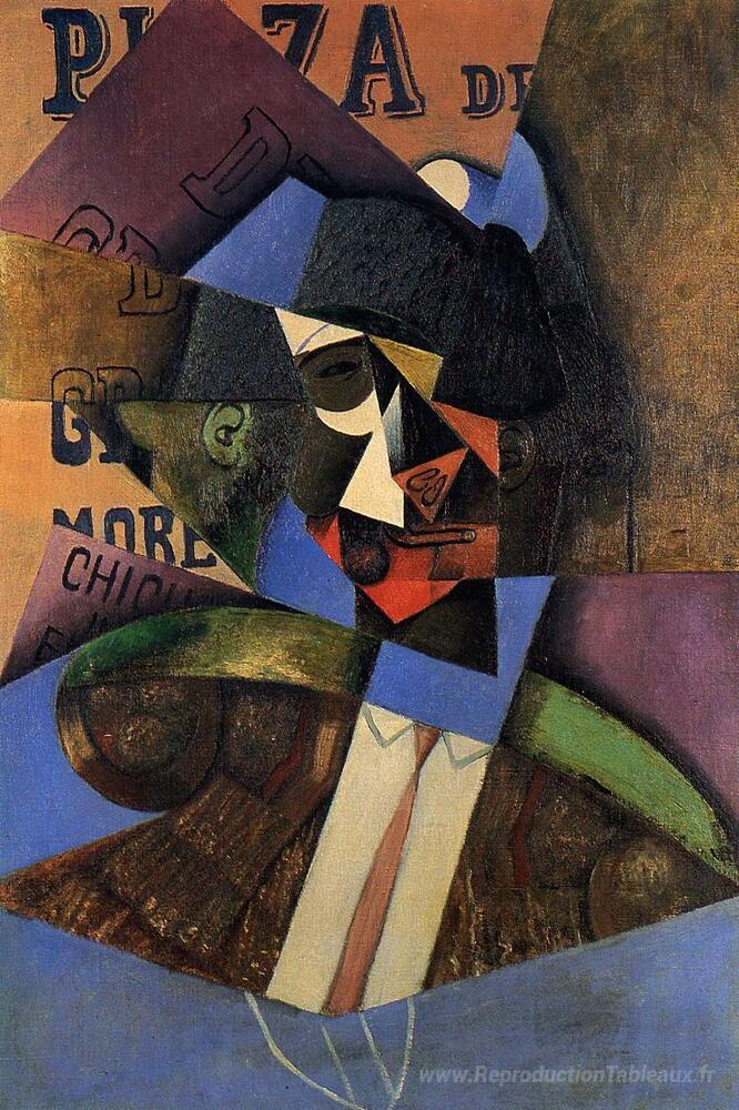 Nous vous proposons une reproduction artisanale sur toile du célèbre tableau 'Le Bull Fighter' de Juan Gris, provenant du Musée de la Reproduction.