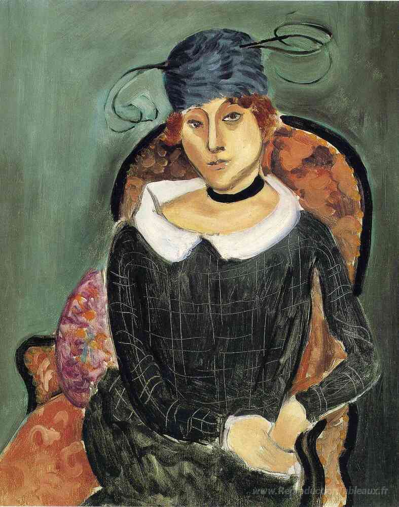 Nous vous proposons une reproduction artisanale sur toile du célèbre tableau 'Le chapeau de plume d'autruche' de Henri Matisse, provenant du Musée de la Reproduction.