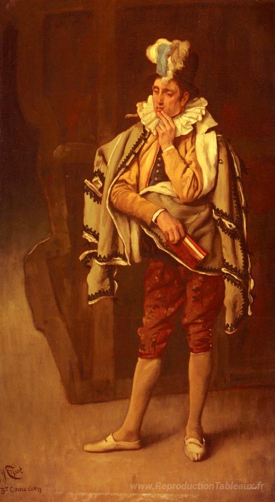 Nous vous proposons une reproduction artisanale sur toile du célèbre tableau 'Le comédien' de James Tissot, provenant du Musée de la Reproduction.