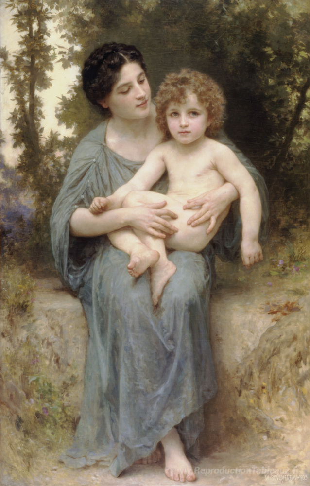 Nous vous proposons une reproduction artisanale sur toile du célèbre tableau 'Le frère cadet' de William-Adolphe Bouguereau, provenant du Musée de la Reproduction.