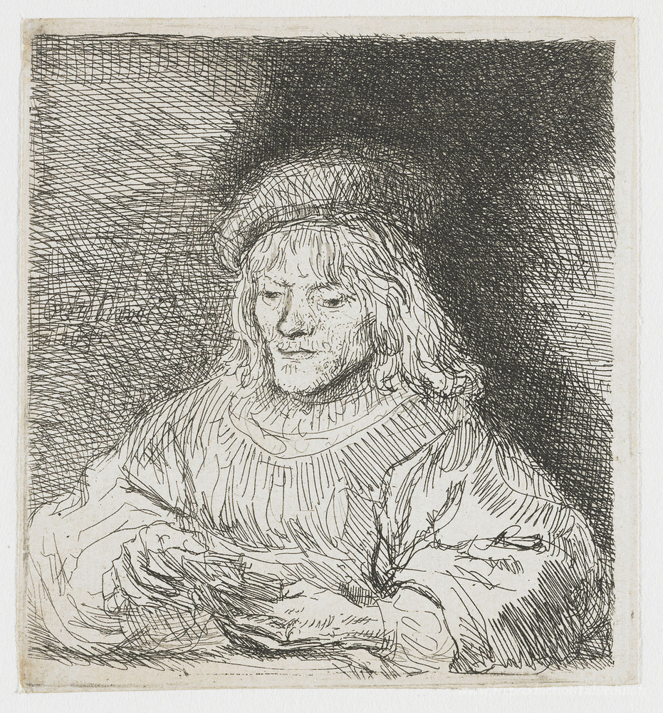 Nous vous proposons une reproduction artisanale sur toile du célèbre tableau 'Le joueur de la carte' de Rembrandt, provenant du Musée de la Reproduction.