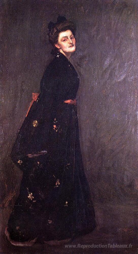 Nous vous proposons une reproduction artisanale sur toile du célèbre tableau 'Le kimono noir' de William Merritt Chase, provenant du Musée de la Reproduction.
