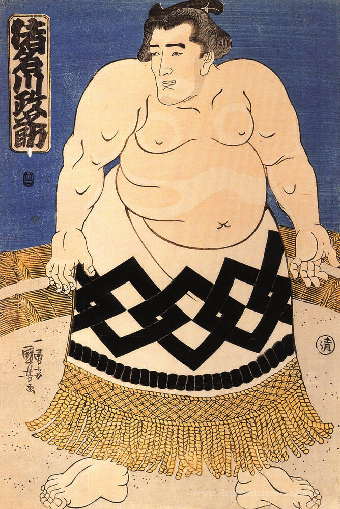 Nous vous proposons une reproduction artisanale sur toile du célèbre tableau 'Le lutteur sumo' de Utagawa Kuniyoshi, provenant du Musée de la Reproduction.