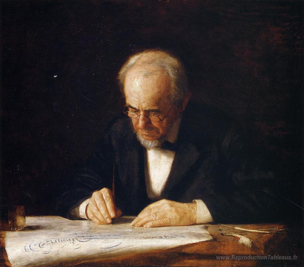 Nous vous proposons une reproduction artisanale sur toile du célèbre tableau 'Le maître d'écriture (Benjamin Eakins)' de Thomas Eakins, provenant du Musée de la Reproduction.