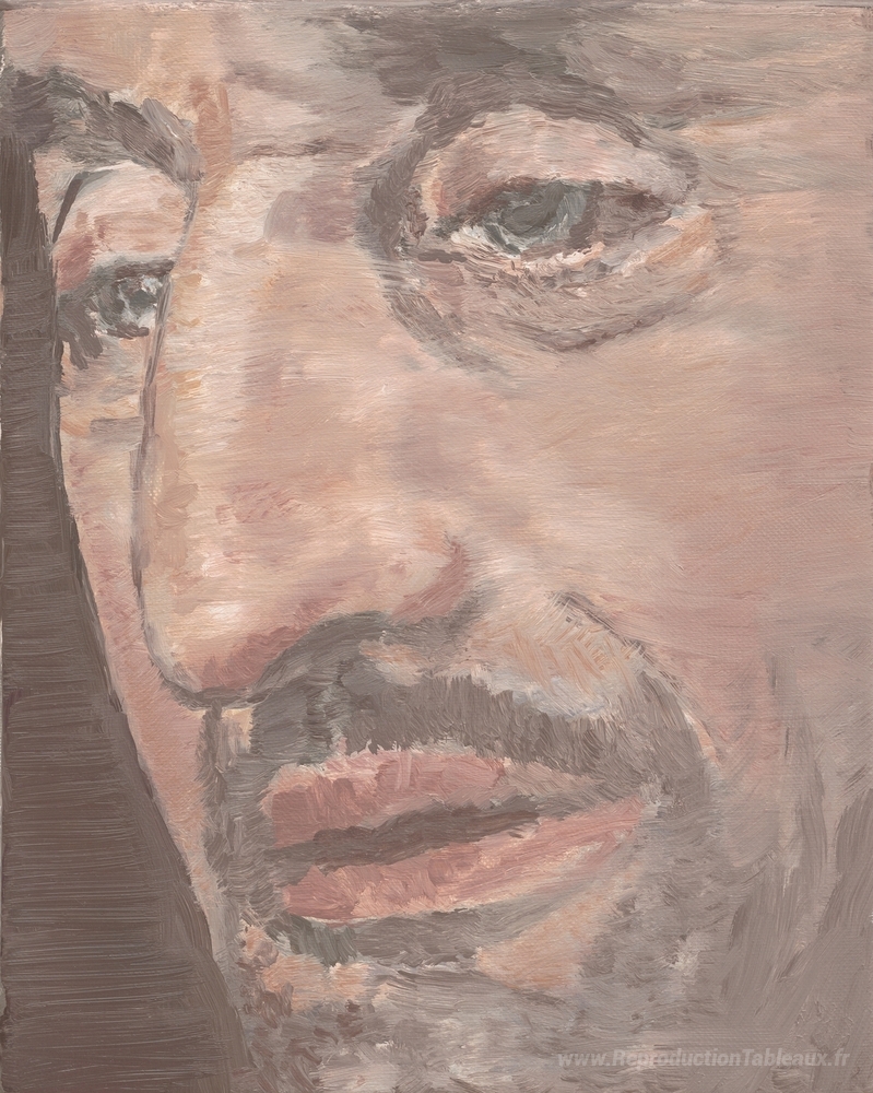 Nous vous proposons une reproduction artisanale sur toile du célèbre tableau 'Le nez' de Luc Tuymans, provenant du Musée de la Reproduction.