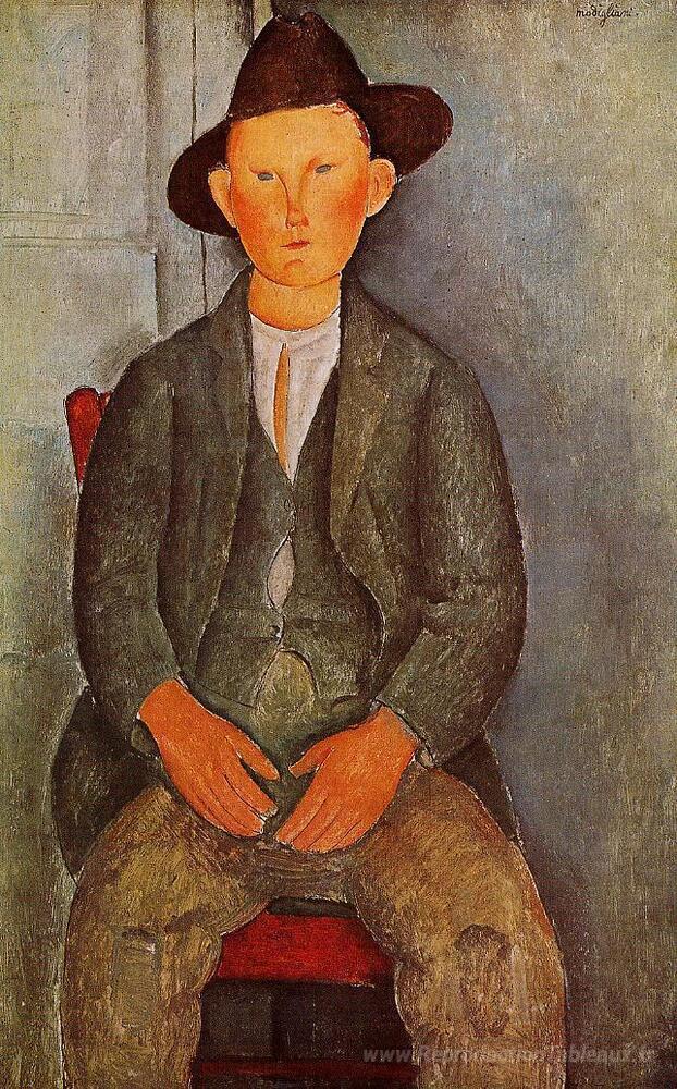 Nous vous proposons une reproduction artisanale sur toile du célèbre tableau 'Le petit paysan' de Amedeo Modigliani, provenant du Musée de la Reproduction.