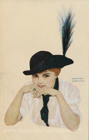 Nous vous proposons une reproduction artisanale sur toile du célèbre tableau 'Le siska implapable' de Raphael Kirchner, provenant du Musée de la Reproduction.