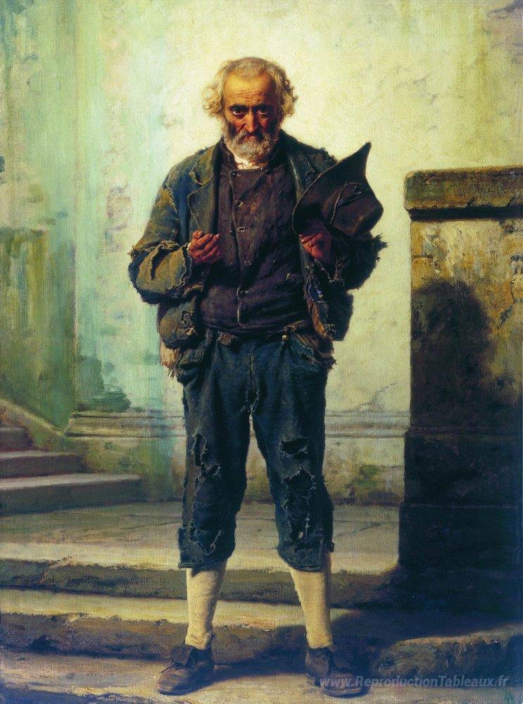 Nous vous proposons une reproduction artisanale sur toile du célèbre tableau 'Le vieux mendiant' de Fyodor Bronnikov, provenant du Musée de la Reproduction.
