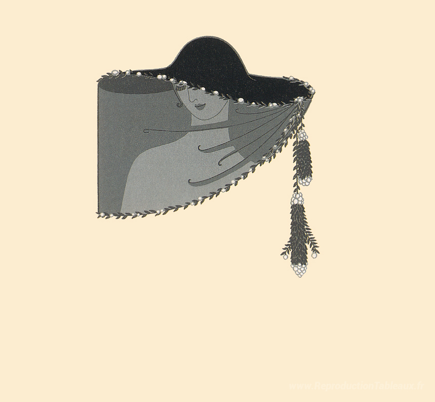 Nous vous proposons une reproduction artisanale sur toile du célèbre tableau 'Le voile' de Erte, provenant du Musée de la Reproduction.