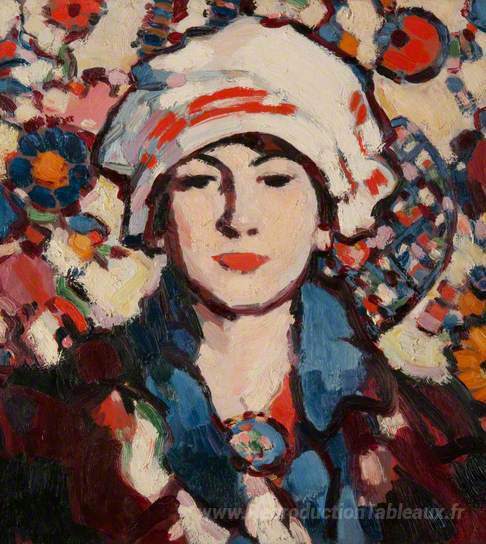 Nous vous proposons une reproduction artisanale sur toile du célèbre tableau 'Le voile Persan' de John Duncan Fergusson, provenant du Musée de la Reproduction.