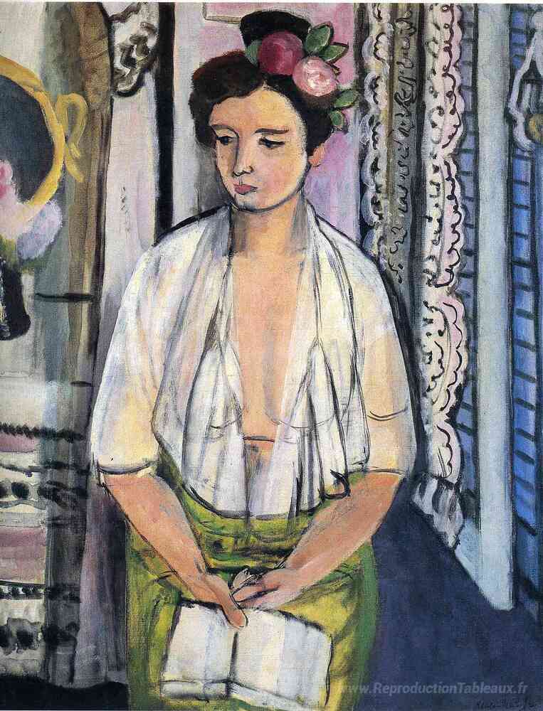 Nous vous proposons une reproduction artisanale sur toile du célèbre tableau 'Lecteur sur fond noir' de Henri Matisse, provenant du Musée de la Reproduction.