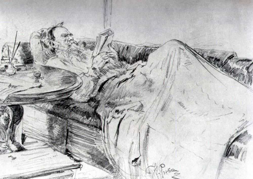 Nous vous proposons une reproduction artisanale sur toile du célèbre tableau 'Leo Tolstoy lettura' de Ilya Repin, provenant du Musée de la Reproduction.