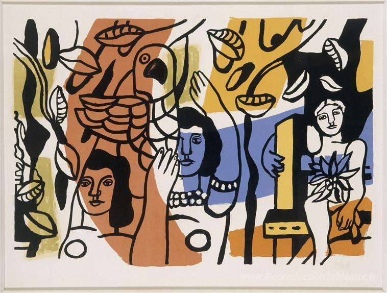 Nous vous proposons une reproduction artisanale sur toile du célèbre tableau 'Les deux femmes, deux sœurs' de Fernand Leger, provenant du Musée de la Reproduction.