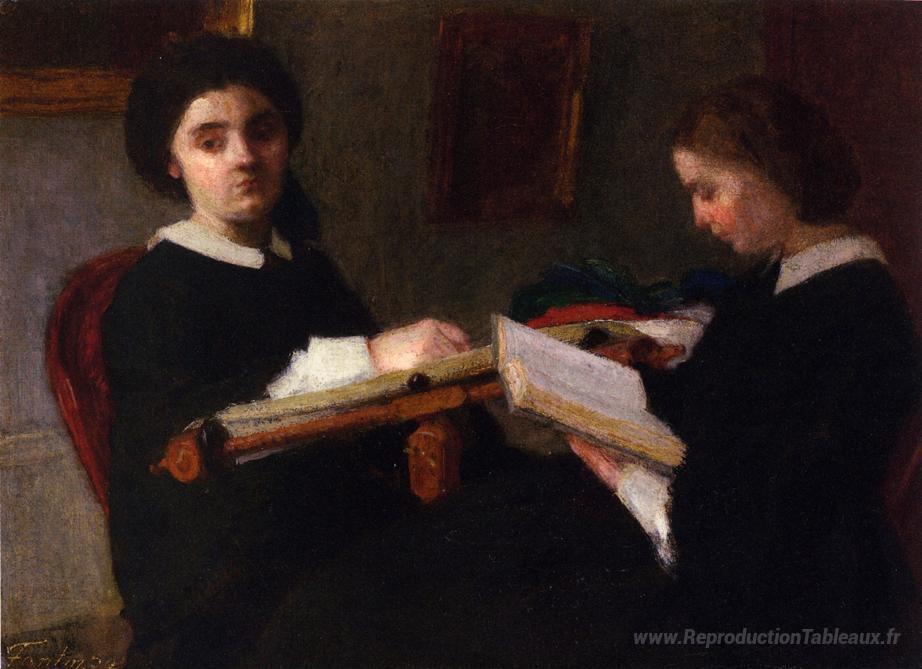 Nous vous proposons une reproduction artisanale sur toile du célèbre tableau 'Les deux sœurs' de Henri Fantin-Latour, provenant du Musée de la Reproduction.