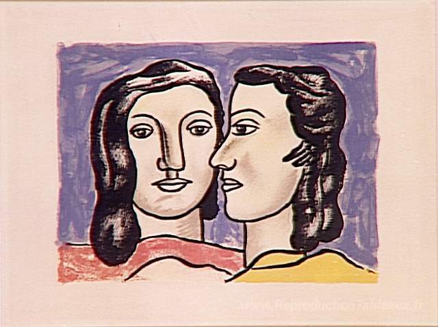 Nous vous proposons une reproduction artisanale sur toile du célèbre tableau 'Les deux visages' de Fernand Leger, provenant du Musée de la Reproduction.