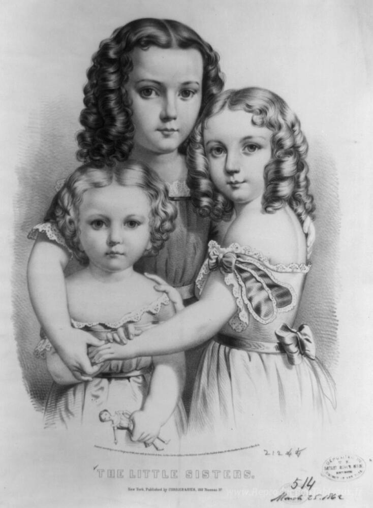 Nous vous proposons une reproduction artisanale sur toile du célèbre tableau 'Les petites sœurs' de Currier and Ives, provenant du Musée de la Reproduction.