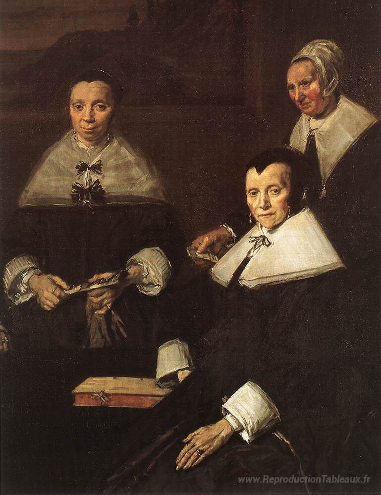 Nous vous proposons une reproduction artisanale sur toile du célèbre tableau 'Les réentesses de l'almhouse des vieilles hommes, Haarlem (détai' de Frans Hals, provenant du Musée de la Reproduction.