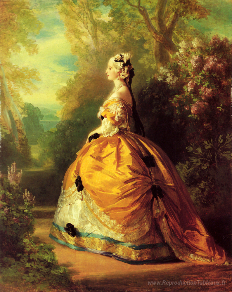Nous vous proposons une reproduction artisanale sur toile du célèbre tableau 'L'impératrice Eugénie' de Franz Xaver Winterhalter, provenant du Musée de la Reproduction.