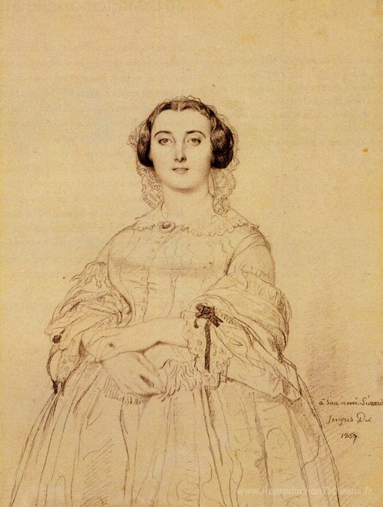 Nous vous proposons une reproduction artisanale sur toile du célèbre tableau 'Madame Charles Simart, né Amélie Baltard' de Jean Auguste Dominique Ingres, provenant du Musée de la Reproduction.