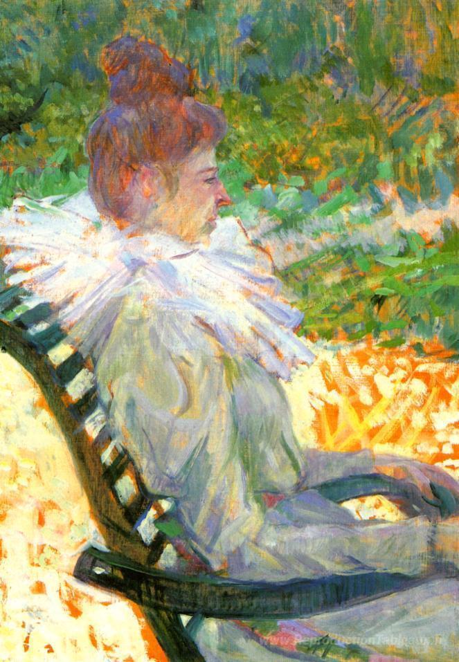 Nous vous proposons une reproduction artisanale sur toile du célèbre tableau 'Madame E. Tapie de Celeyran dans un jardin' de Henri de Toulouse-Lautrec, provenant du Musée de la Reproduction.