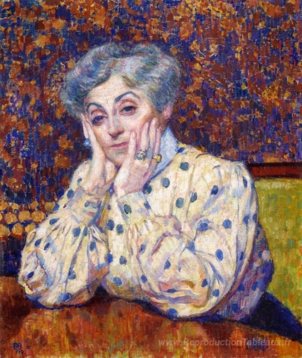 Nous vous proposons une reproduction artisanale sur toile du célèbre tableau 'Madame Theo van Ryselberghe' de Theo van Rysselberghe, provenant du Musée de la Reproduction.