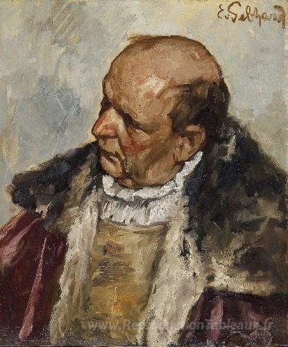 Nous vous proposons une reproduction artisanale sur toile du célèbre tableau 'Mannlicher CHARAKTERKOPF' de Eduard von Gebhardt, provenant du Musée de la Reproduction.