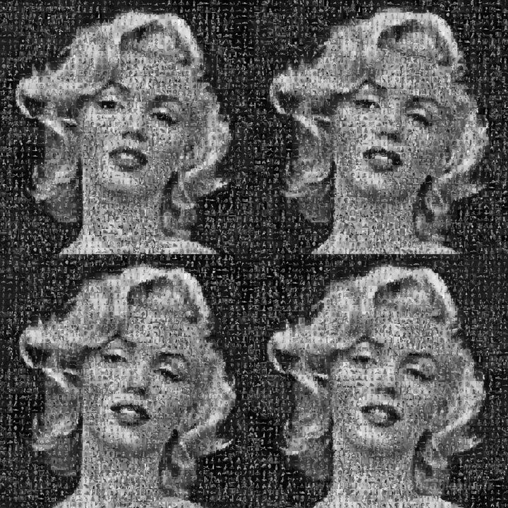 Nous vous proposons une reproduction artisanale sur toile du célèbre tableau 'Marilyn' de Robert Silvers, provenant du Musée de la Reproduction.