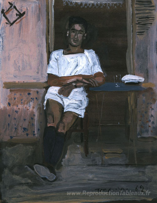 Nous vous proposons une reproduction artisanale sur toile du célèbre tableau 'Marin' de Yiannis Tsaroychis, provenant du Musée de la Reproduction.