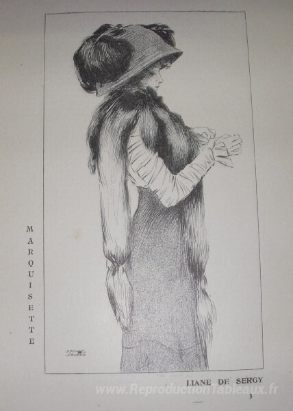 Nous vous proposons une reproduction artisanale sur toile du célèbre tableau 'Marquisette' de Raphael Kirchner, provenant du Musée de la Reproduction.
