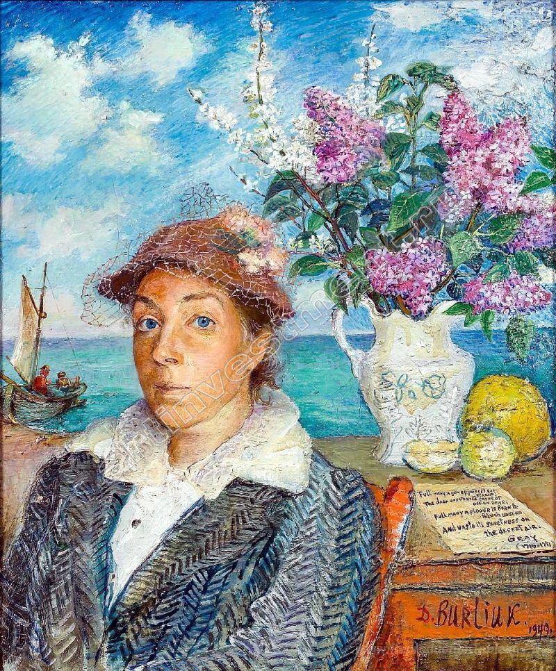 Nous vous proposons une reproduction artisanale sur toile du célèbre tableau 'Marusia au bord de la mer' de David Burliuk, provenant du Musée de la Reproduction.