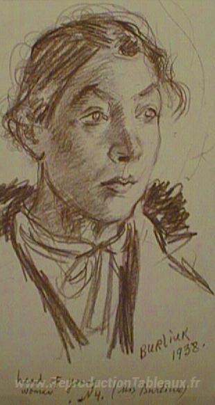 Nous vous proposons une reproduction artisanale sur toile du célèbre tableau 'Marusia' de David Burliuk, provenant du Musée de la Reproduction.