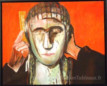 Nous vous proposons une reproduction artisanale sur toile du célèbre tableau 'Mascara' de Graca Morais, provenant du Musée de la Reproduction.