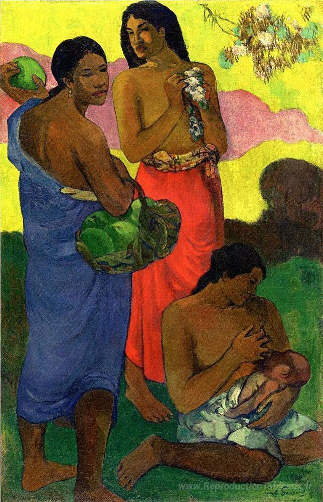 Nous vous proposons une reproduction artisanale sur toile du célèbre tableau 'Maternite II' de Paul Gauguin, provenant du Musée de la Reproduction.