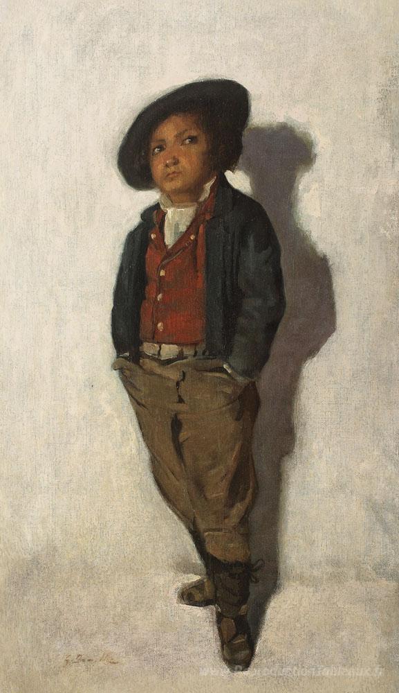 Nous vous proposons une reproduction artisanale sur toile du célèbre tableau 'Micul Gavroche' de George Demetrescu Mirea, provenant du Musée de la Reproduction.