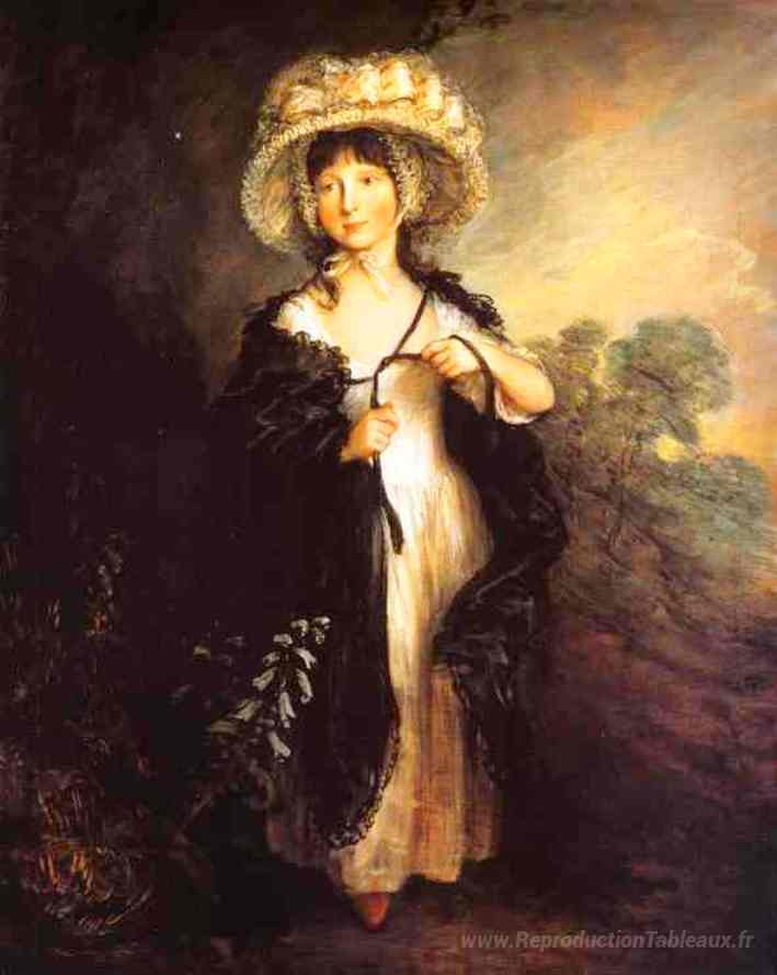 Nous vous proposons une reproduction artisanale sur toile du célèbre tableau 'Mlle Elizabeth Haverfield' de Thomas Gainsborough, provenant du Musée de la Reproduction.