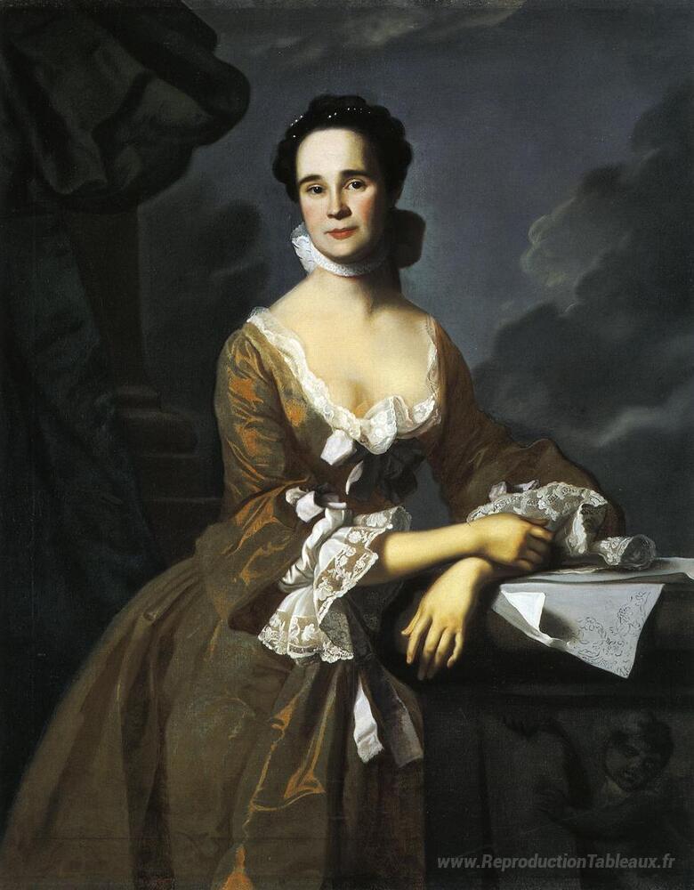 Nous vous proposons une reproduction artisanale sur toile du célèbre tableau 'Mmedaniel Hubbard (Mary Greene)' de John Singleton Copley, provenant du Musée de la Reproduction.