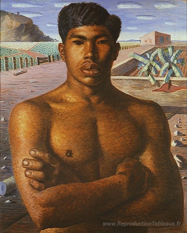 Nous vous proposons une reproduction artisanale sur toile du célèbre tableau 'O Mesti?o' de Candido Portinari, provenant du Musée de la Reproduction.
