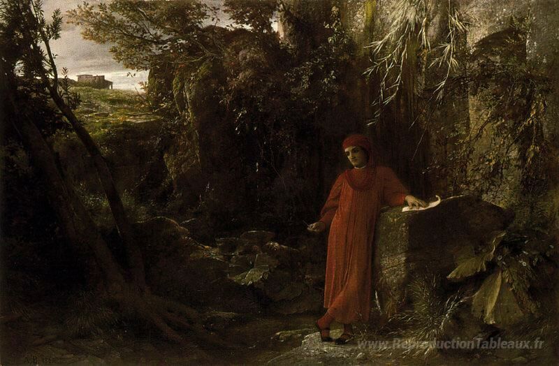 Nous vous proposons une reproduction artisanale sur toile du célèbre tableau 'Pétrarque par la fontaine de Vaucluse' de Arnold Böcklin, provenant du Musée de la Reproduction.