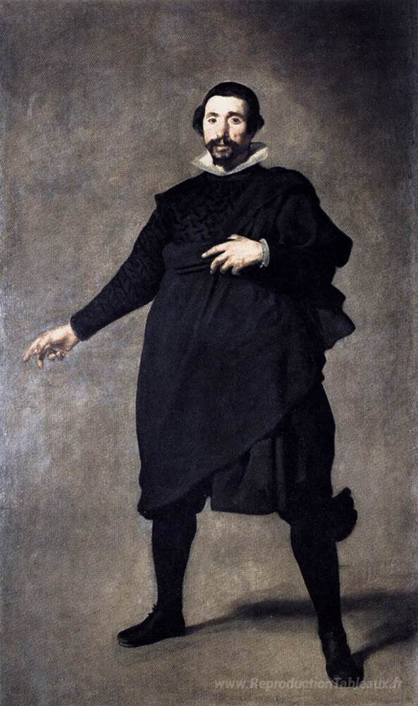 Nous vous proposons une reproduction artisanale sur toile du célèbre tableau 'Pablo de Valladolid' de Diego Velazquez, provenant du Musée de la Reproduction.