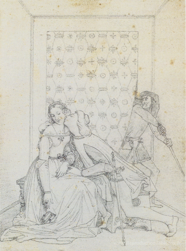 Nous vous proposons une reproduction artisanale sur toile du célèbre tableau 'Paolo et Francesca' de Jean Auguste Dominique Ingres, provenant du Musée de la Reproduction.