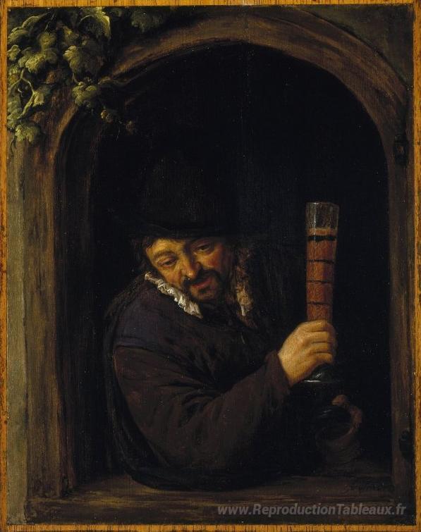 Nous vous proposons une reproduction artisanale sur toile du célèbre tableau 'Paysan à une fenêtre' de Adriaen van Ostade, provenant du Musée de la Reproduction.
