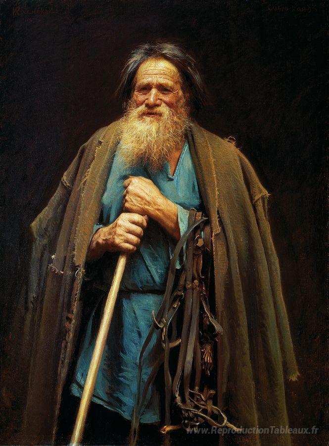 Nous vous proposons une reproduction artisanale sur toile du célèbre tableau 'Paysan avec une bride' de Ivan Kramskoy, provenant du Musée de la Reproduction.