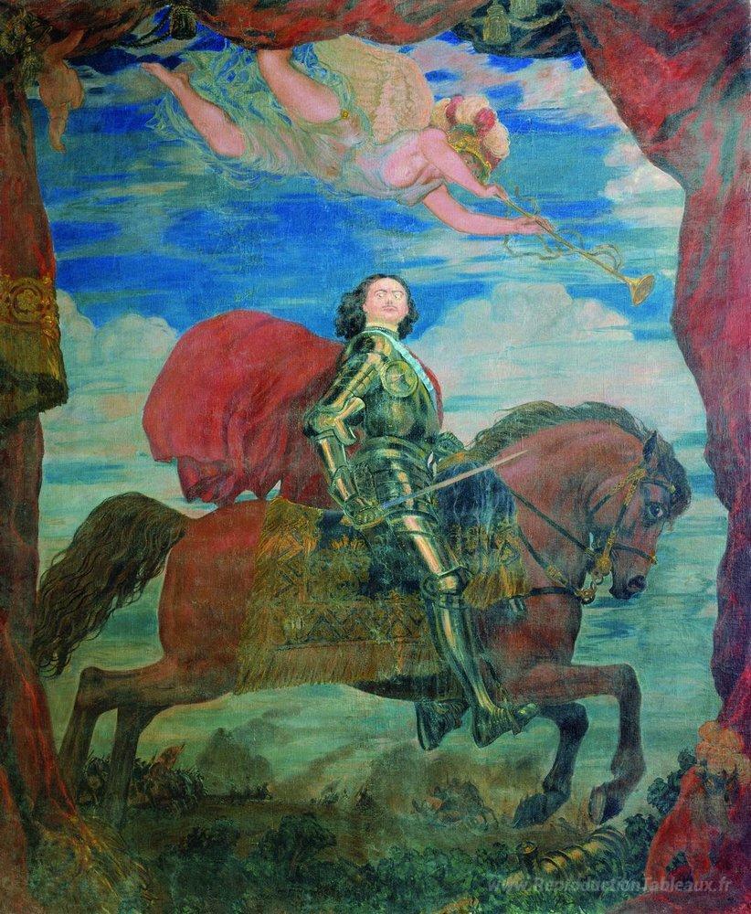 Nous vous proposons une reproduction artisanale sur toile du célèbre tableau 'Peter le grand' de Boris Kustodiev, provenant du Musée de la Reproduction.