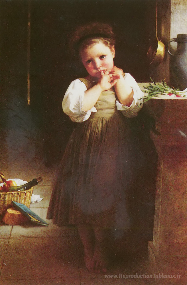 Nous vous proposons une reproduction artisanale sur toile du célèbre tableau 'Petit' de William-Adolphe Bouguereau, provenant du Musée de la Reproduction.