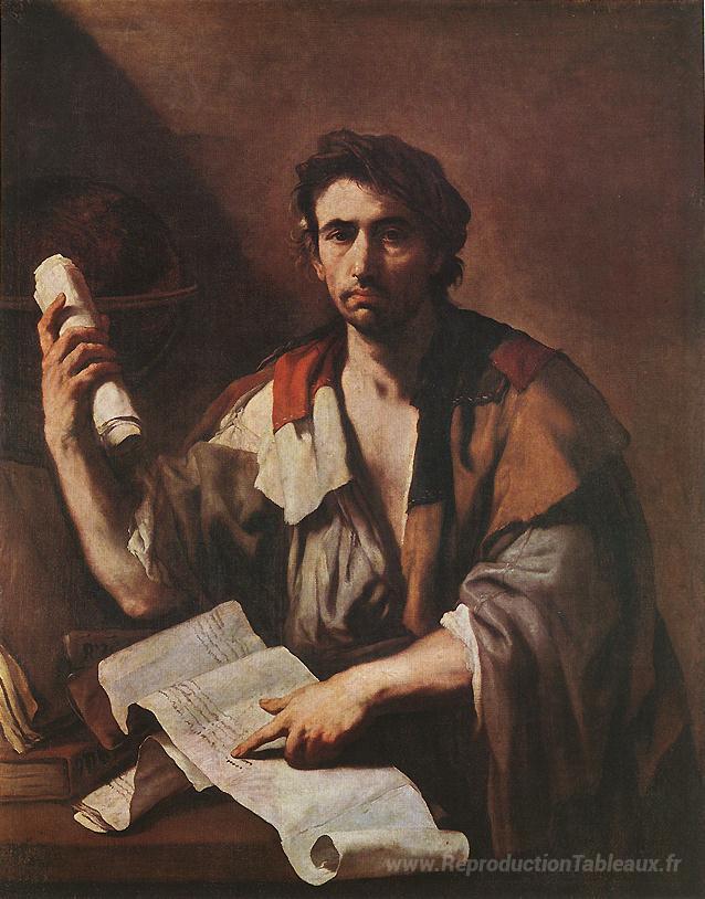 Nous vous proposons une reproduction artisanale sur toile du célèbre tableau 'Philosophe cynique' de Luca Giordano, provenant du Musée de la Reproduction.