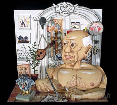 Nous vous proposons une reproduction artisanale sur toile du célèbre tableau 'Picasso' de Red Grooms, provenant du Musée de la Reproduction.